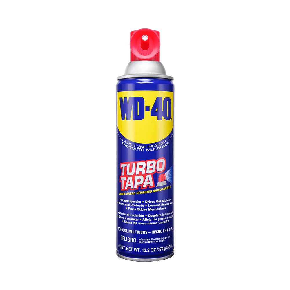WD-40 Producto Multi-Uso cubre rápidamente grandes superficies para ayudar a prevenir el óxido y la corrosión en superficies metálicas, liberar piezas atascadas, desplazar la humedad y lubricar. Desplaza la humedad para prevenir el óxido y renovar sistemas eléctricos